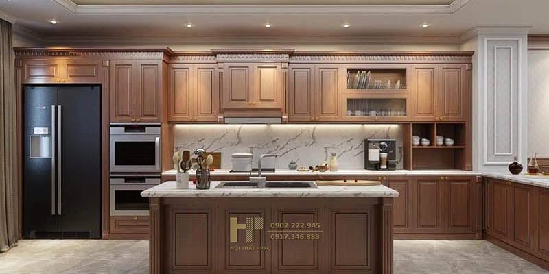Tủ bếp gỗ có vẻ đẹp tự nhiên, sang trọng, thể hiện cá tính gia chủ