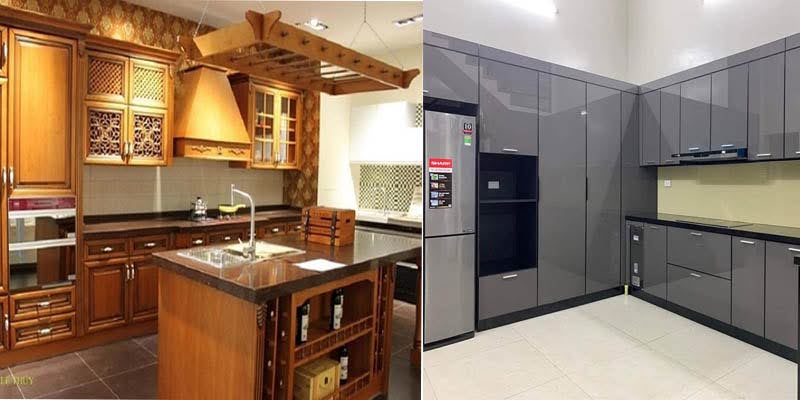 Ngược lại, nếu bạn chuộng vẻ đẹp ấm cúng và phong cách, tủ bếp gỗ sẽ là lựa chọn phù hợp hơn. Gỗ tự nhiên mang đến vẻ sang trọng, đẳng cấp, trong khi gỗ công nghiệp giúp tiết kiệm chi phí mà vẫn đảm bảo tính tiện nghi. Tuy nhiên, bạn nên chú ý chống ẩm ở khu vực chậu rửa để kéo dài tuổi thọ cho tủ.