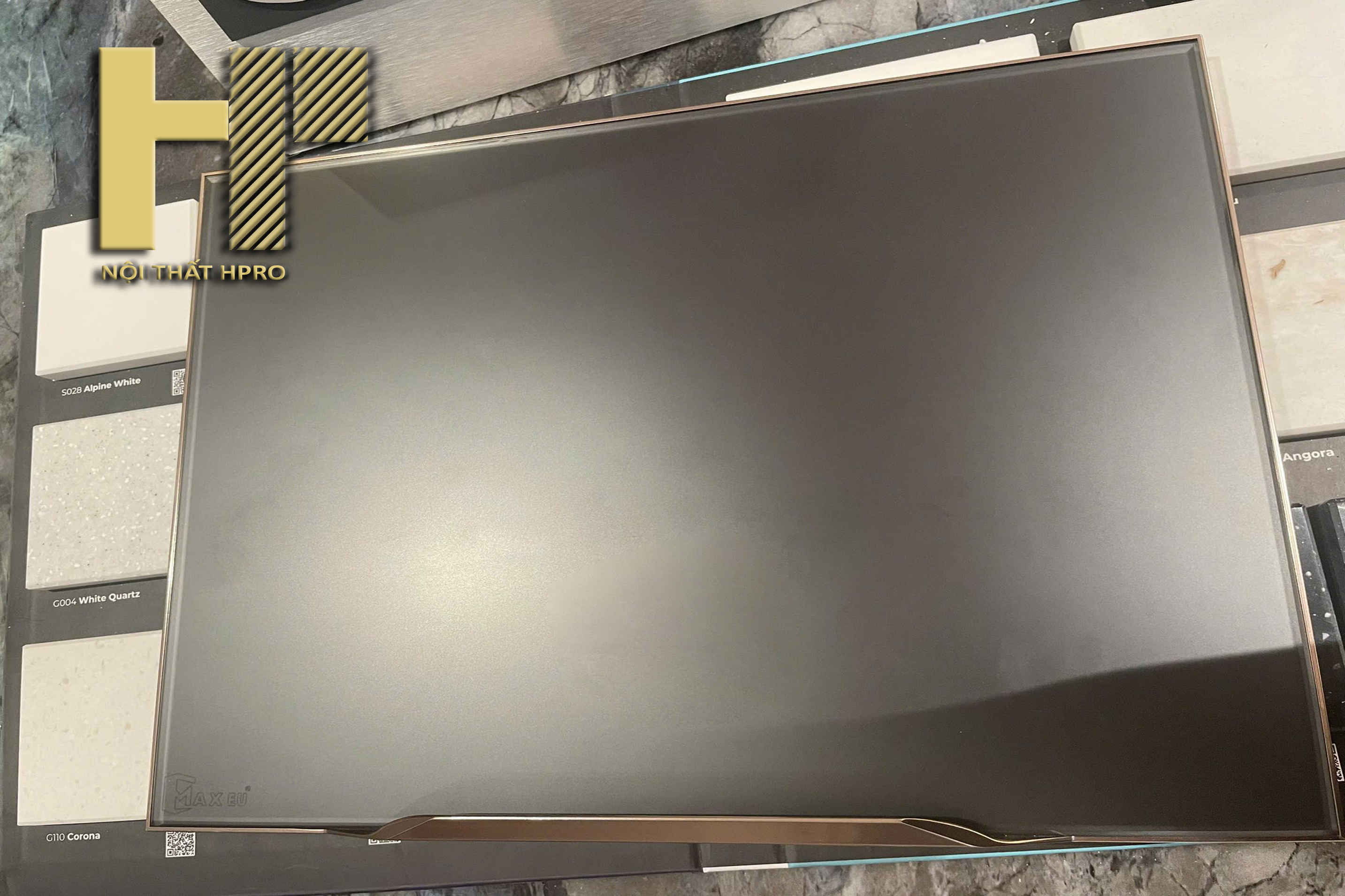 Cánh kính tủ bếp dạng bề mặt nhám mờ chống bám vân tay, cực kỳ sang trọng và hiện đại, dễ dàng vệ sịnh đây là mẫu cánh kính nổi bật nhất trong năm 2026