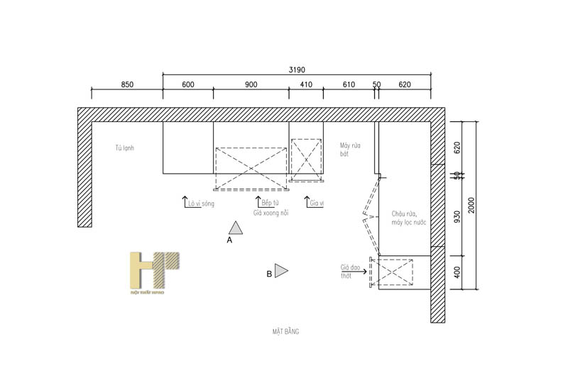 Dưới đây là bản vẽ 2D mẫu tủ bếp này cho anh chị tham khảo: