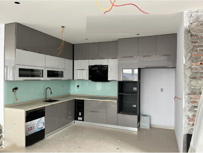 Bảng báo giá thi công tủ bếp cánh kính chi tiết