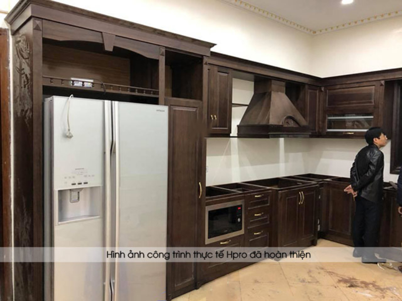 Dự án tủ bếp gỗ óc chó tại nhà chị Hiền, Hưng Yên