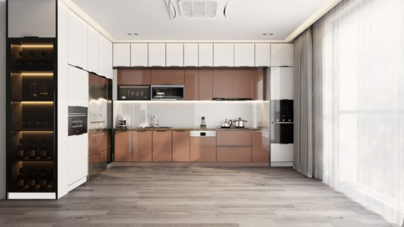 Tủ bếp inox cánh kính có sự đa dạng về mẫu mã, phù hợp với phong cách hiện đại nhờ thiết kế cánh phẳng và bảng màu phong phú. Bề mặt kính bóng gương giúp tạo hiệu ứng chiều sâu, khiến không gian bếp trở nên sáng và rộng rãi hơn so với các chất liệu thông thường.
