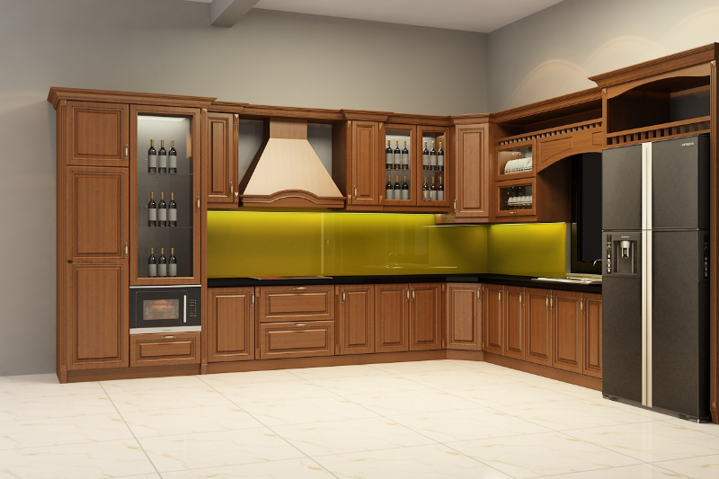 Mỗi sản phẩm đều được xử lý sấy khô, chống cong vênh, mối mọt và co ngót, đảm bảo duy trì hình dáng và màu sắc đẹp bền theo thời gian. Các đường vân gỗ tự nhiên được chọn lọc kỹ lưỡng, kết hợp cùng lớp sơn phủ cao cấp giúp tôn lên vẻ đẳng cấp và sang trọng của căn bếp. Mẫu tủ này đặc biệt được ưa chuộng trong biệt thự, nhà phố cao cấp, nơi gia chủ đề cao tính thẩm mỹ và giá trị truyền thống.