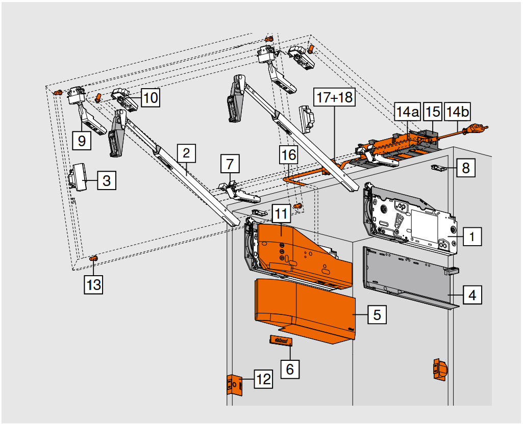 Chi tiết các bộ phận đầy đủ của một bộ tay nâng Blum Aventos HF