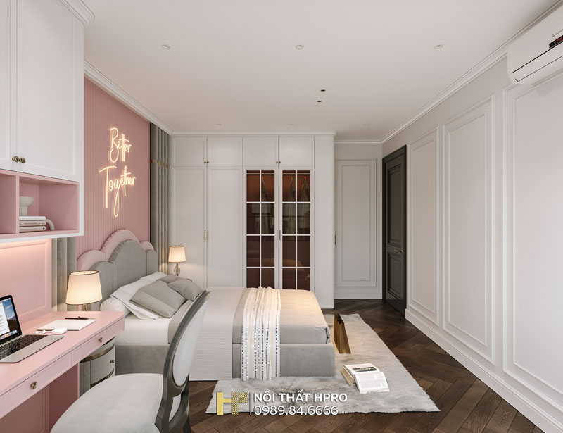 - Phòng ngủ 2 & 3 vẫn giữ tone trắng chủ đạo kết hợp màu theo sở thích của bé trai, bé gái