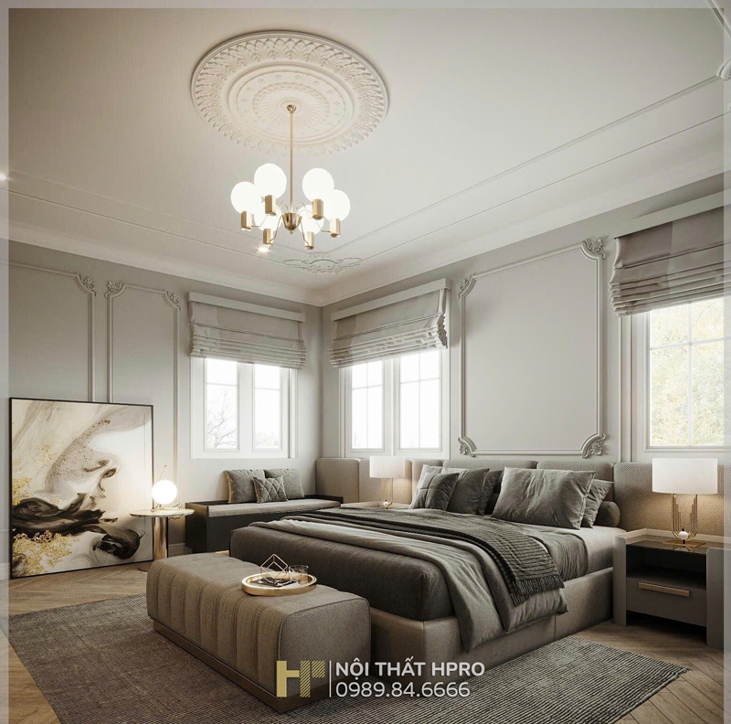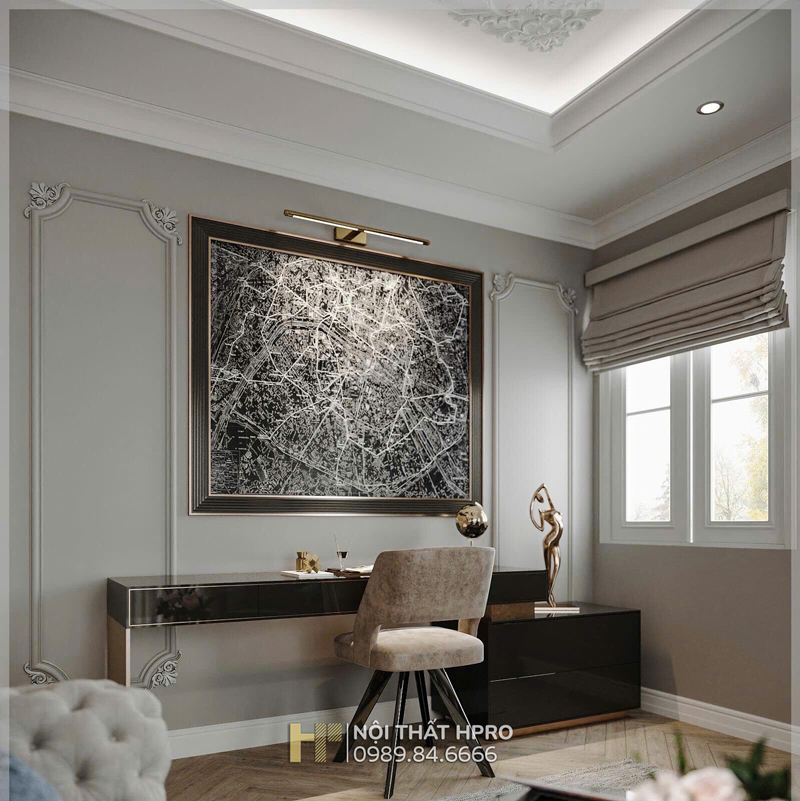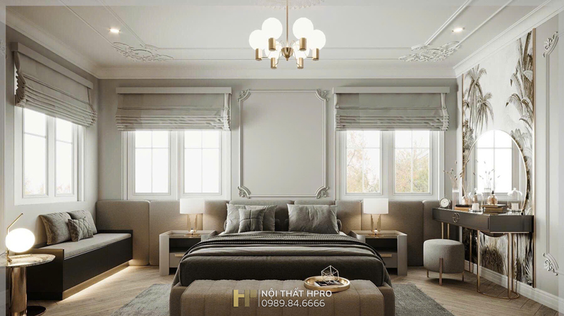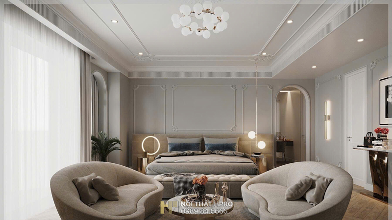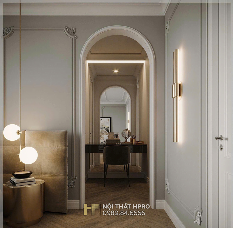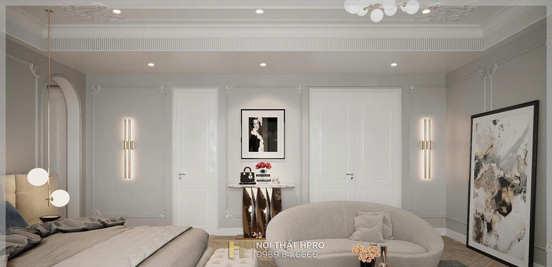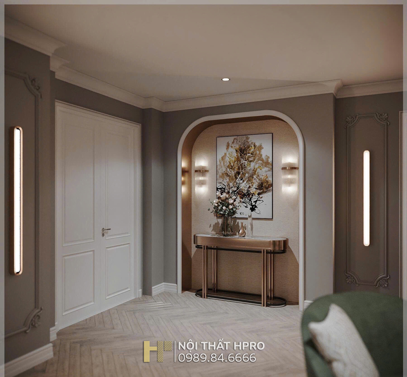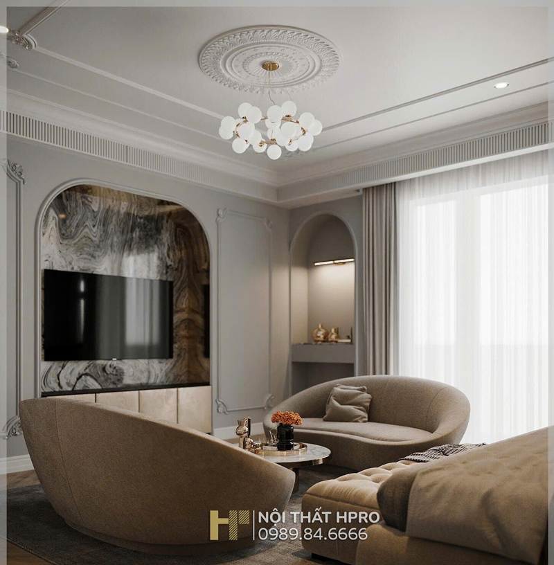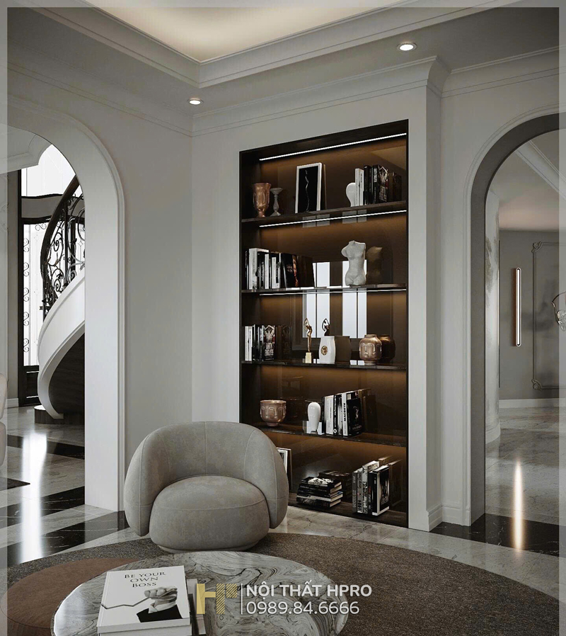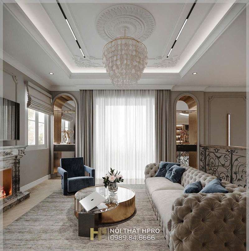 Dự án biệt thự 3 tầng được Hpro triển khai theo phong cách nội thất tân cổ điển, đem lại sự giao thoa hài hòa giữa nét cổ điển sang trọng và tinh thần hiện đại trong thiết kế nội thất.