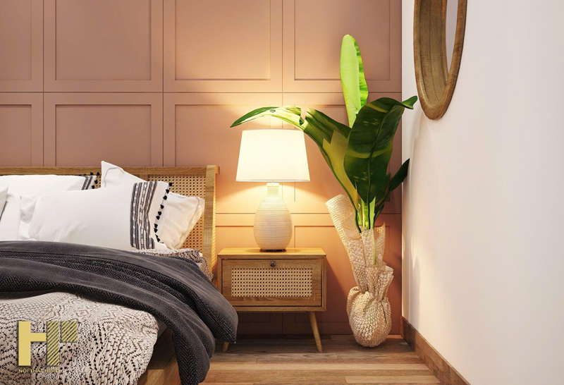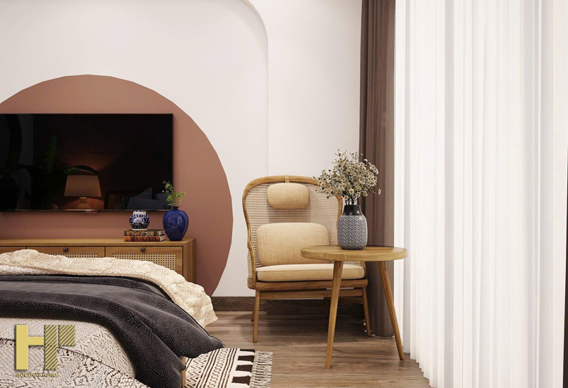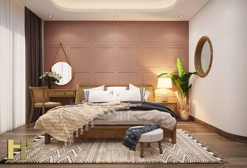 Lấy cảm hứng từ phong cách thiết kế nội thất Bắc Âu, không gian phòng ngủ trong mẫu thiết kế này mang đến cảm giác ấm áp, nhẹ nhàng và thư thái cho gia chủ yêu vẻ đẹp của tự nhiên.