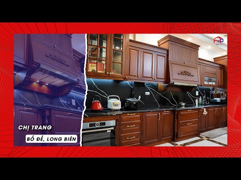 Video thực tế bộ tủ bếp bằng gỗ xoan đào TBXD28 phong cách tân cổ điển nhà chị Trang