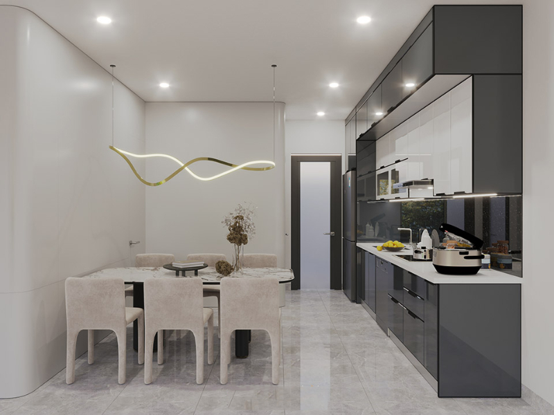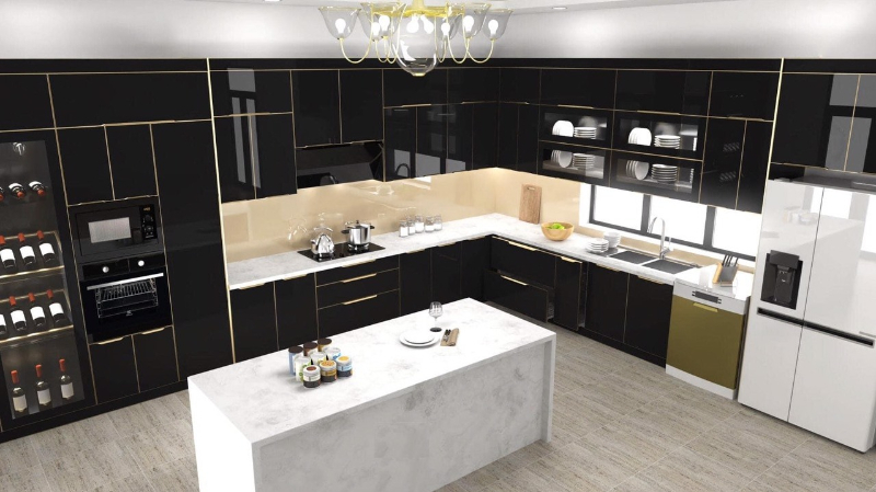 Gia chủ có thể kết hợp thêm với bàn đảo bếp để tối ưu diện tích sẵn có