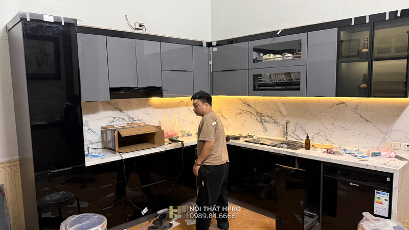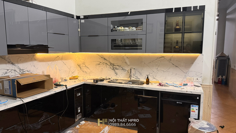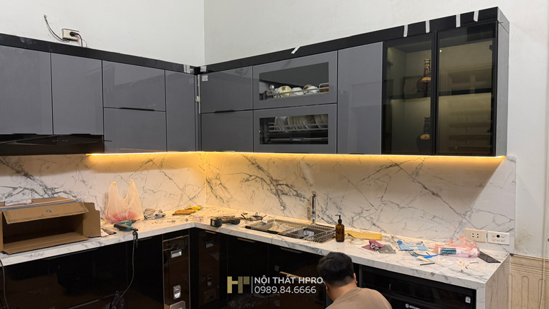Hình ảnh thực tế thi công tủ bếp cánh kính TBCK12