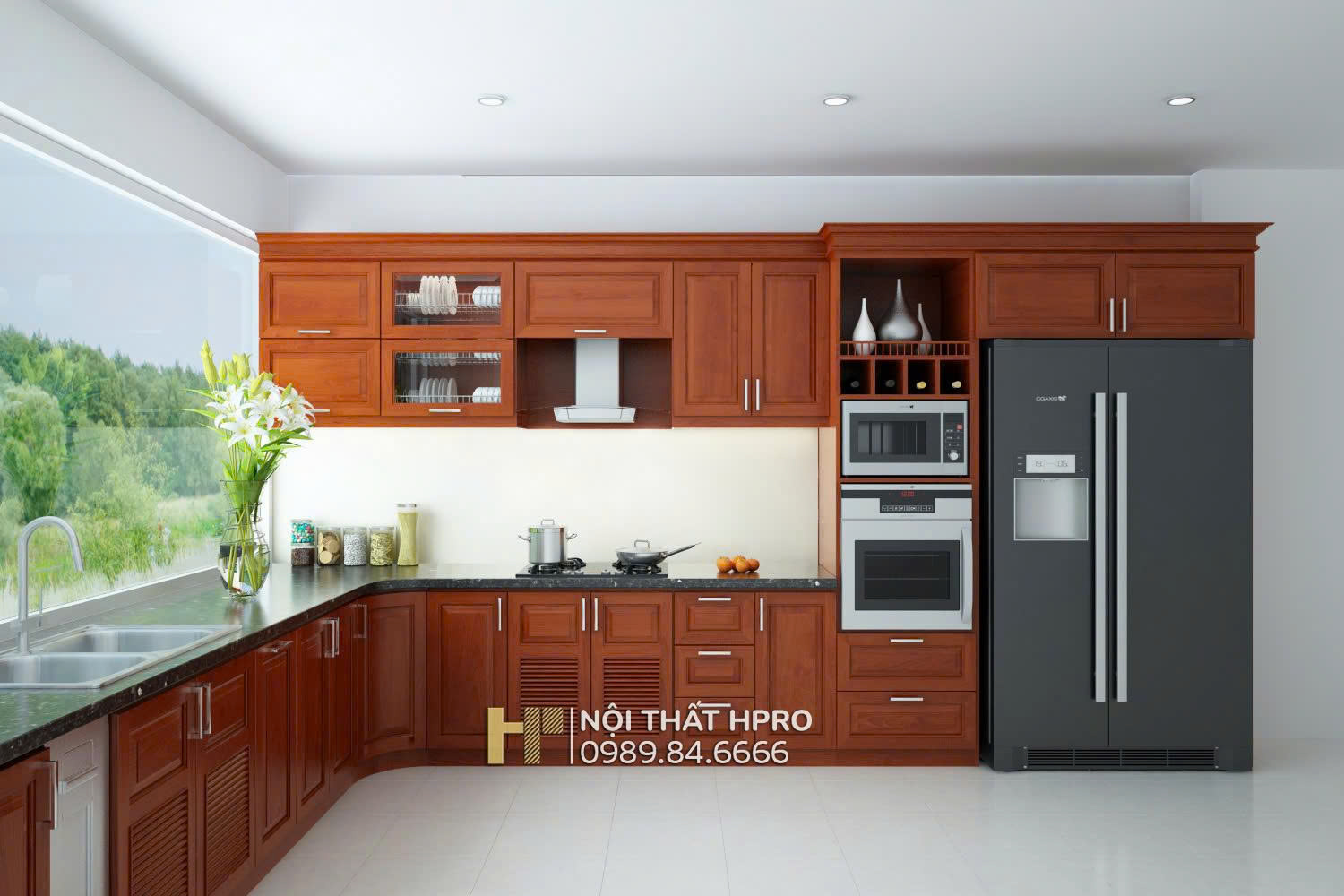 Hình ảnh mẫu thiết kế tủ bếp gỗ giáng hương
