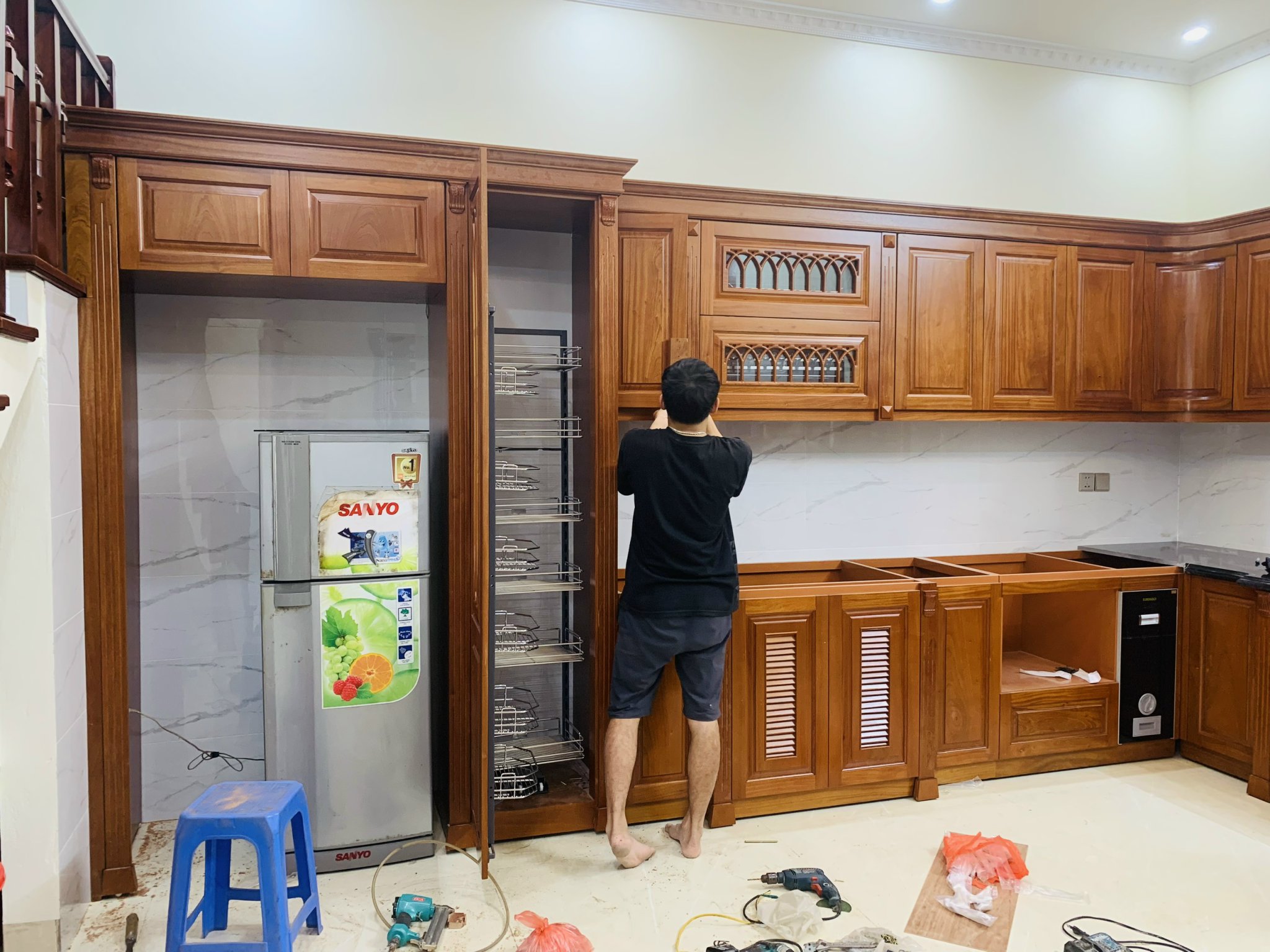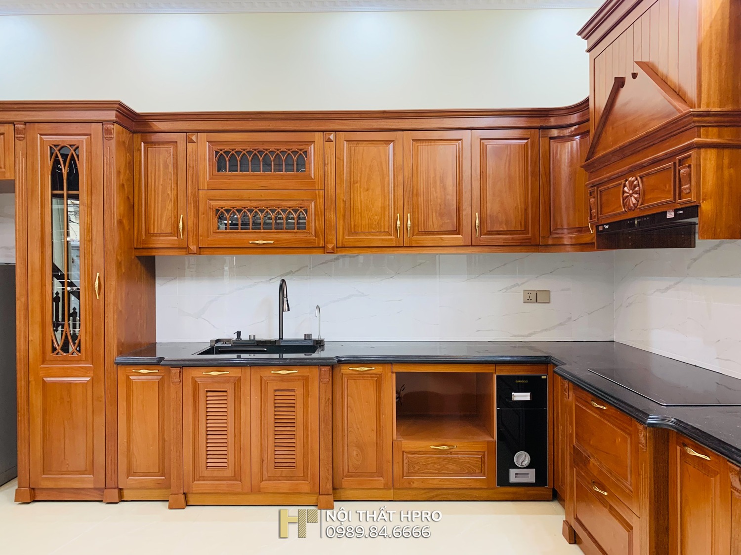 Tủ bếp gỗ Gõ Đỏ Đẹp - Bền - Sang là sự lựa chọn của những gia đình có mức kinh phí đầu tư khá cao và không gian nhà rộng rãi sang trọng. Gỗ gõ đỏ là loại gỗ quý hiếm có giá trị kinh tế cao và mang lại giá trị thẩm mỹ vô cùng cao. Hôm nay hãy cùng nội thất Hpro tìm hiểu chi tiết hơn về bộ tủ bếp gỗ Gõ Đỏ TBGD03