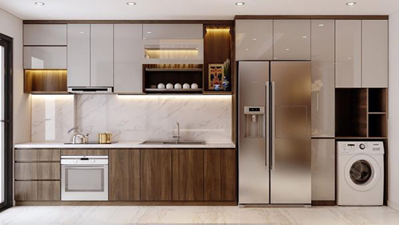 Tối ưu về mặt chiều sâu của tủ, bố trí các thiết bị hợp lý để không gian không bị bí.