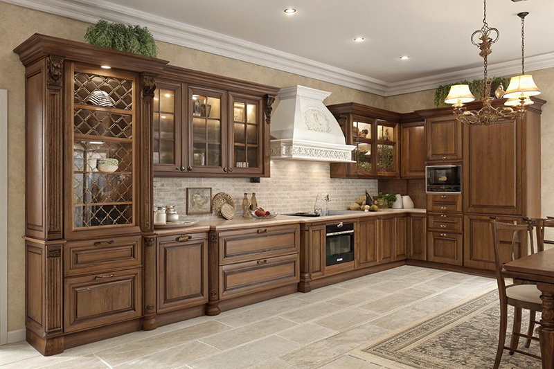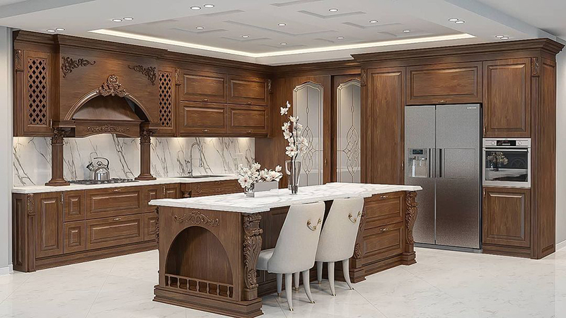 Mẫu 11: Tủ bếp chữ L phong cách tân cổ điển nhẹ