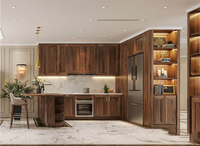Tủ bếp gỗ óc chó chữ L hiện nay được xem là một lựa chọn “cân bằng” nhất giữa tính thẩm mỹ, công năng và khả năng ứng dụng thực tế. Không quá chiếm diện tích như tủ chữ U, cũng không quá đơn giản như chữ I, bố cục chữ L kết hợp cùng với gỗ óc chó tự nhiên mang đến một không gian bếp ấm áp, sang trọng nhưng vẫn đủ linh hoạt, phù hợp từ căn hộ chung cư cho đến nhà phố, biệt thự. Với các gia chủ yêu thích vẻ đẹp trầm sang, mong muốn đầu tư cho bếp lâu dài và đề cao trải nghiệm hằng ngày, thì tủ bếp chữ L bằng gỗ óc chó là một phương án rất đáng cân nhắc.