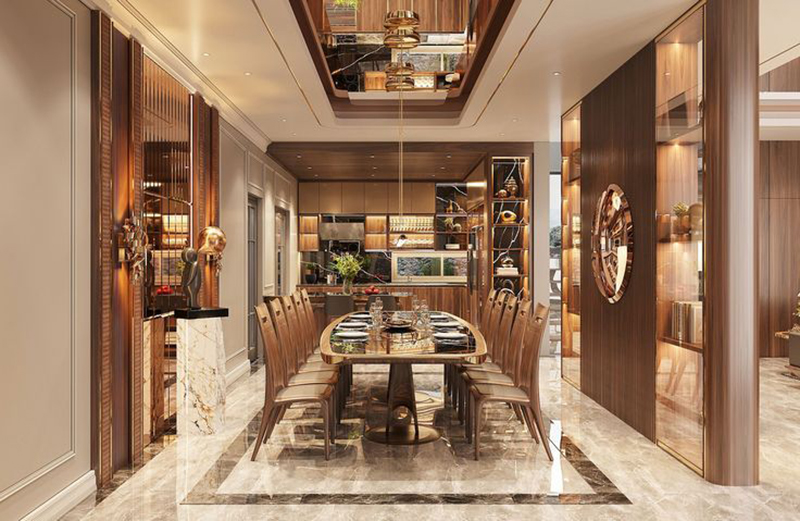 Mẫu 13: Tủ bếp chữ L cho biệt thự không gian mở mang đến tỷ lệ lớn