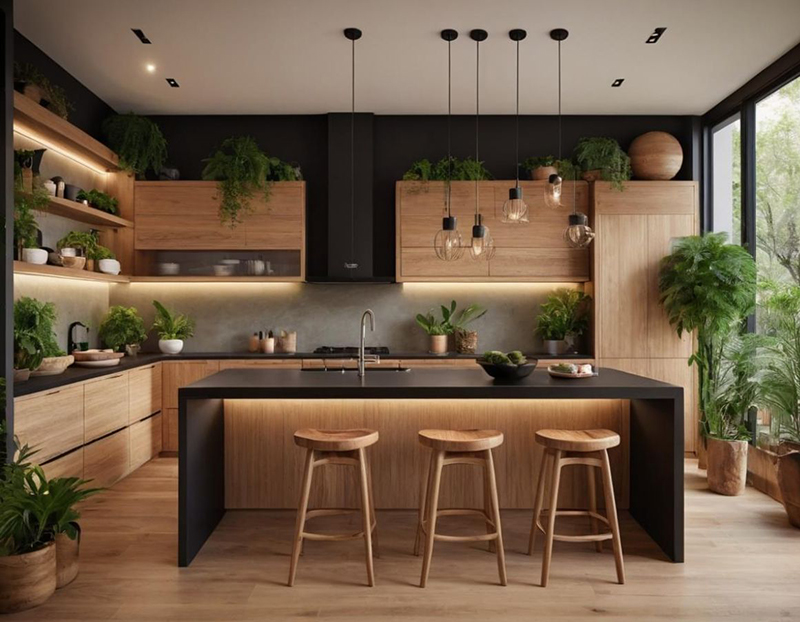 Mẫu 8: Chữ L có thêm quầy bar nhỏ cho không gian bếp mở, tiện nghi