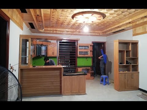 Video thực tế lắp đặt tủ bếp gỗ sồi mỹ TBSM25 kèm quầy bar và bàn đảo nhà anh Huy