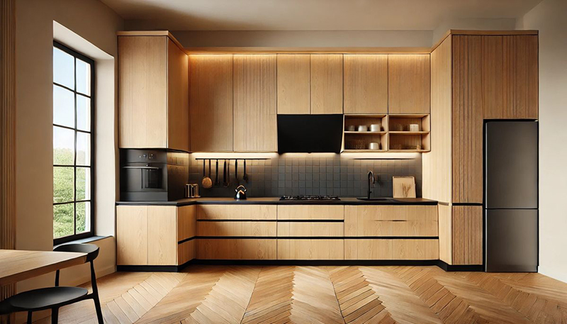Nếu như inox mang lại sự bền bỉ thì cánh gỗ chính là một trong những yếu tố tạo nên tổng thể giá trị thẩm mỹ cho không gian bếp. Cánh tủ gỗ sẽ giúp: