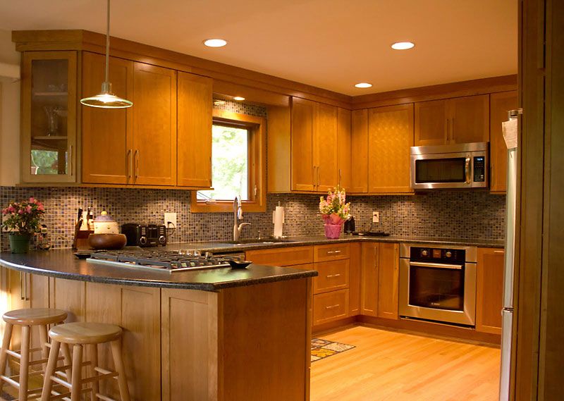 - Tủ bếp inox cánh gỗ hình chữ L tối ưu diện tích