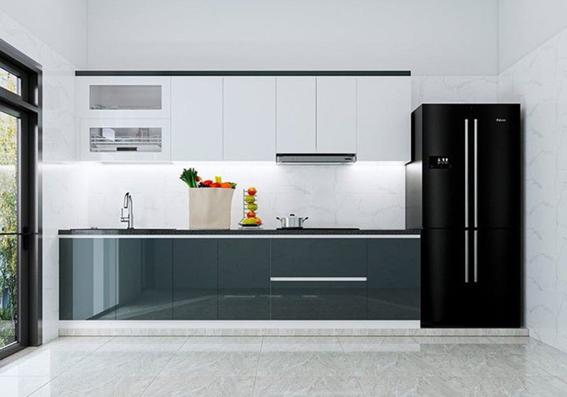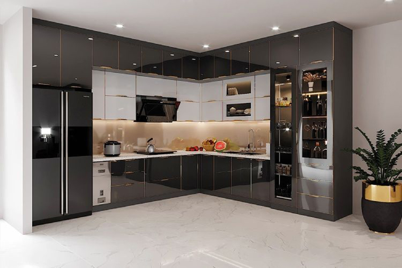Mẫu 2: Tủ bếp inox cánh Acrylic đen sang trọng, cá tính