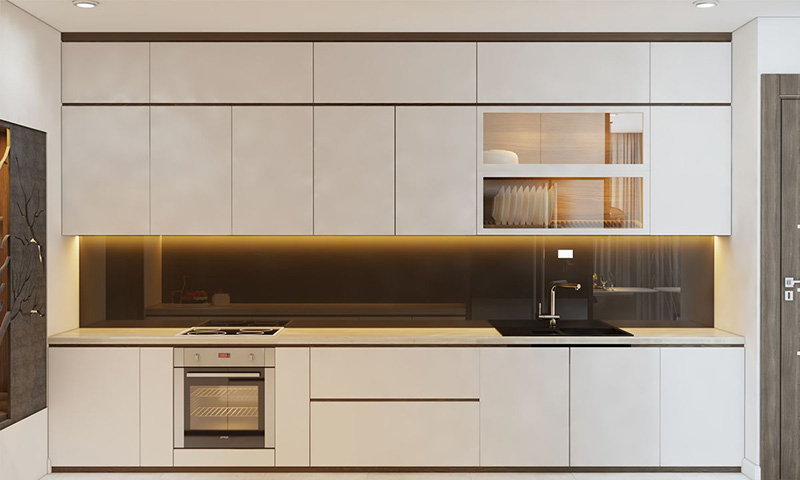 Mẫu 2: Tủ bếp chữ I màu trắng làm kịch trần