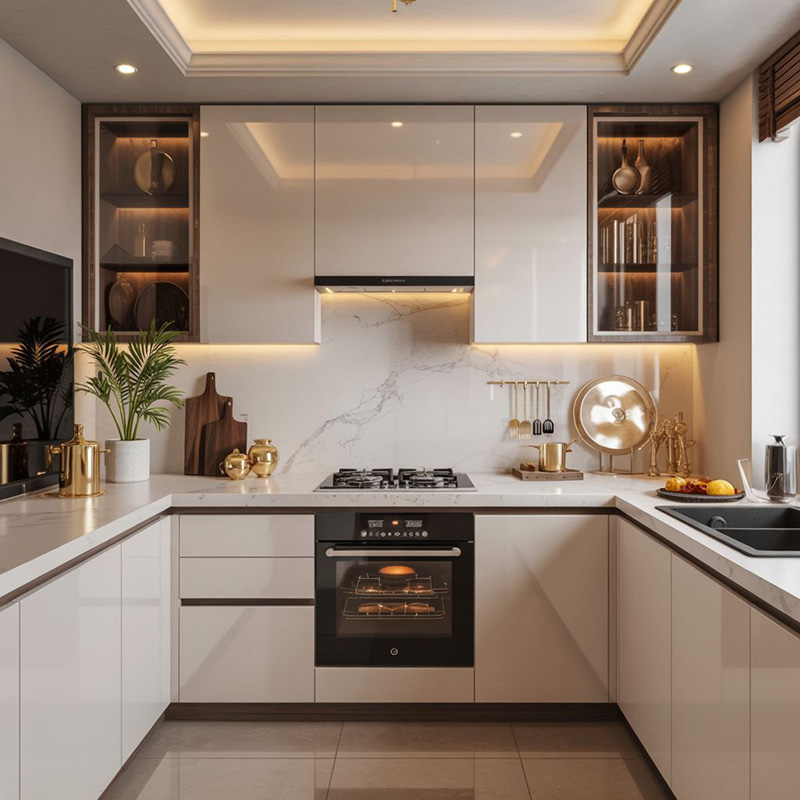 Tăng mạnh thể tích lưu trữ và mặt bàn. Với thiết kế chữ U, nên ưu tiên các không gian có hệ thống chiếu sáng tốt để bếp không bị cảm giác “phẳng” và đơn điệu.