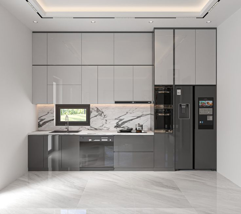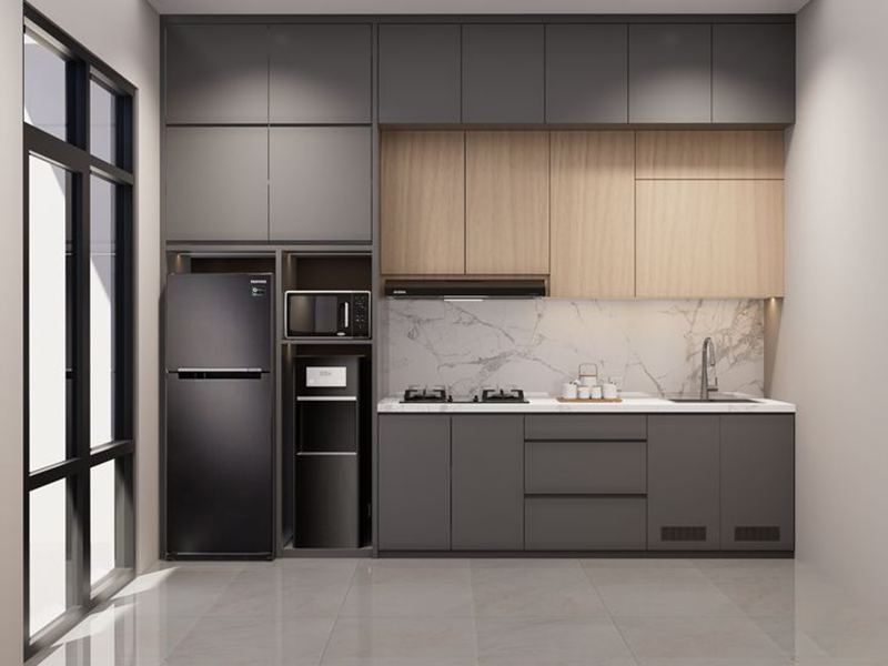 Phù hợp với các gia đình nhiều đồ bếp. Xám ấm sẽ giúp bếp sang nhẹ, dễ chịu khi thường xuyên sử dụng trong thời gian dài.