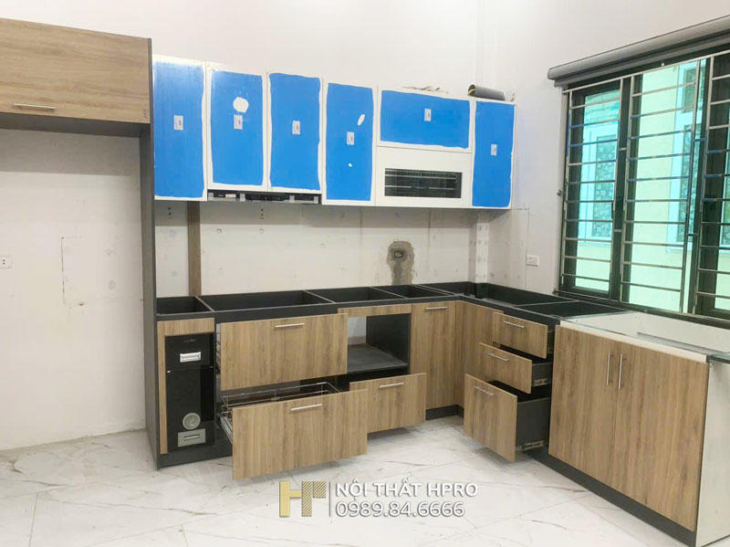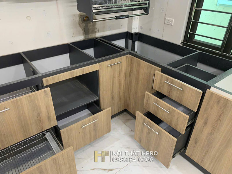 Hình ảnh tủ bếp Laminate TBLM43 thi công thực tế tại TP Nam Định