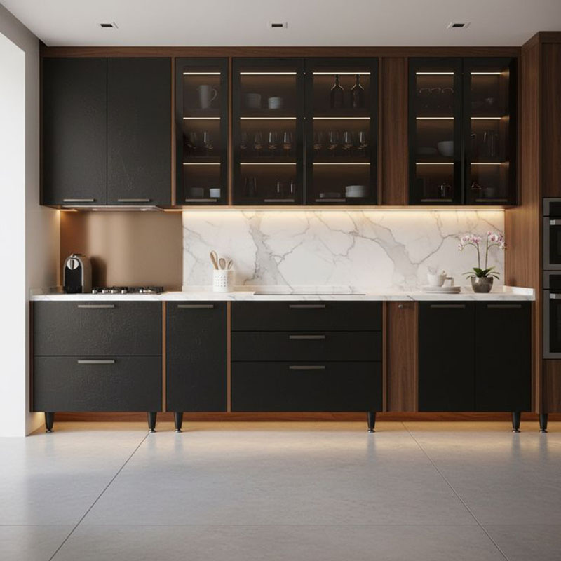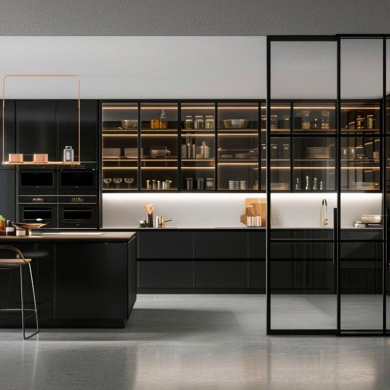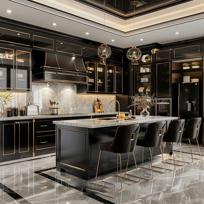- Tủ bếp đen tân cổ điển