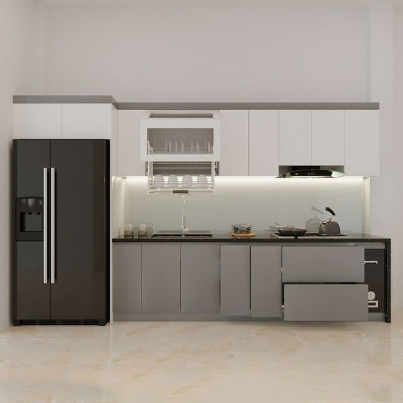 - Tủ bếp chữ I gọn, tối giản phù hợp chung cư
