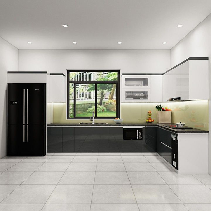 Tủ bếp đen trắng phù hợp với đa dạng không gian