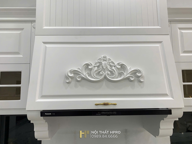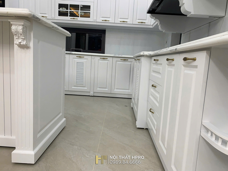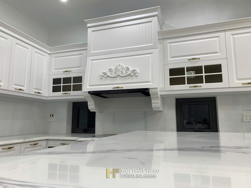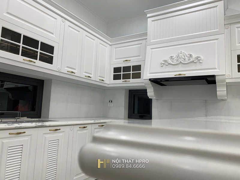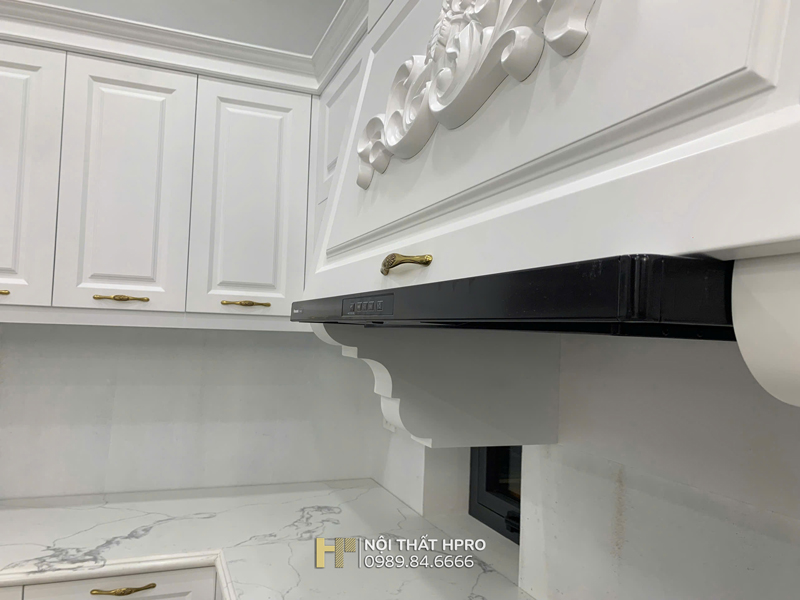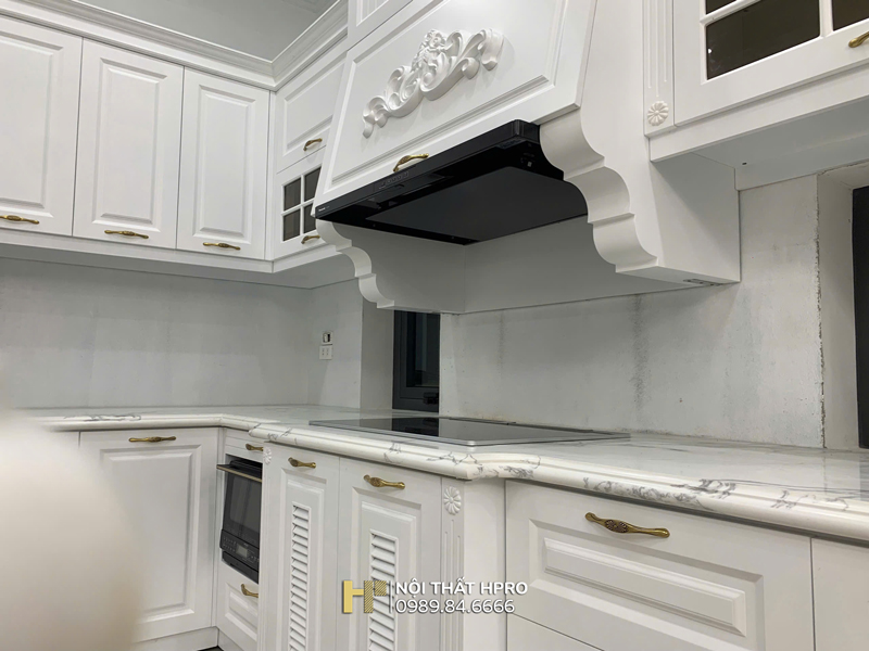 Không gian bếp của gia đình chị Thủy tại Tân Mai - Hoàng Mai được HPRO thiết kế và thi công theo phong cách tân cổ điển nhẹ nhàng, sang trọng.