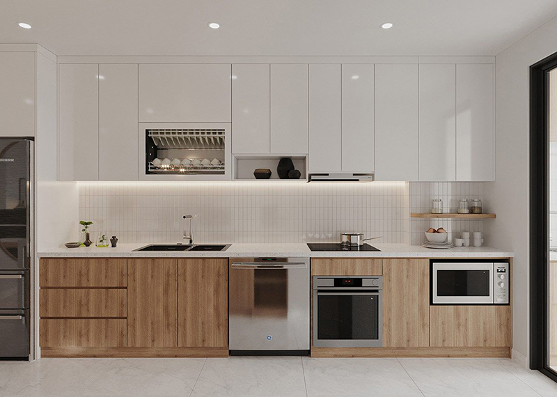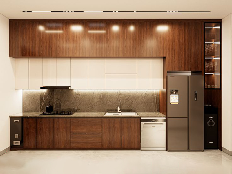 Tăng độ sáng, dễ lau chùi, phù hợp phong cách bếp hiện đại – tối giản.