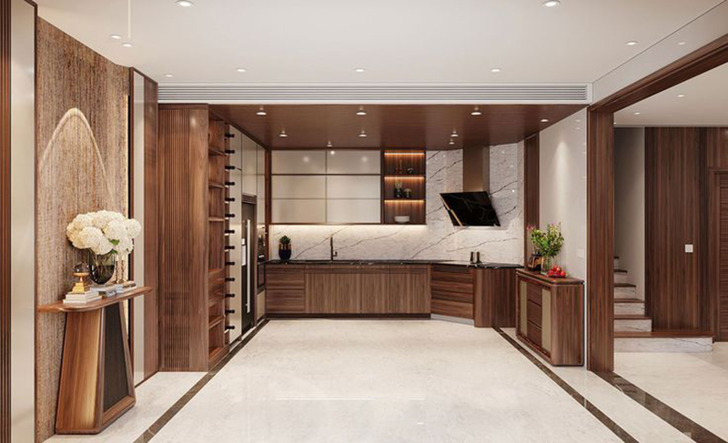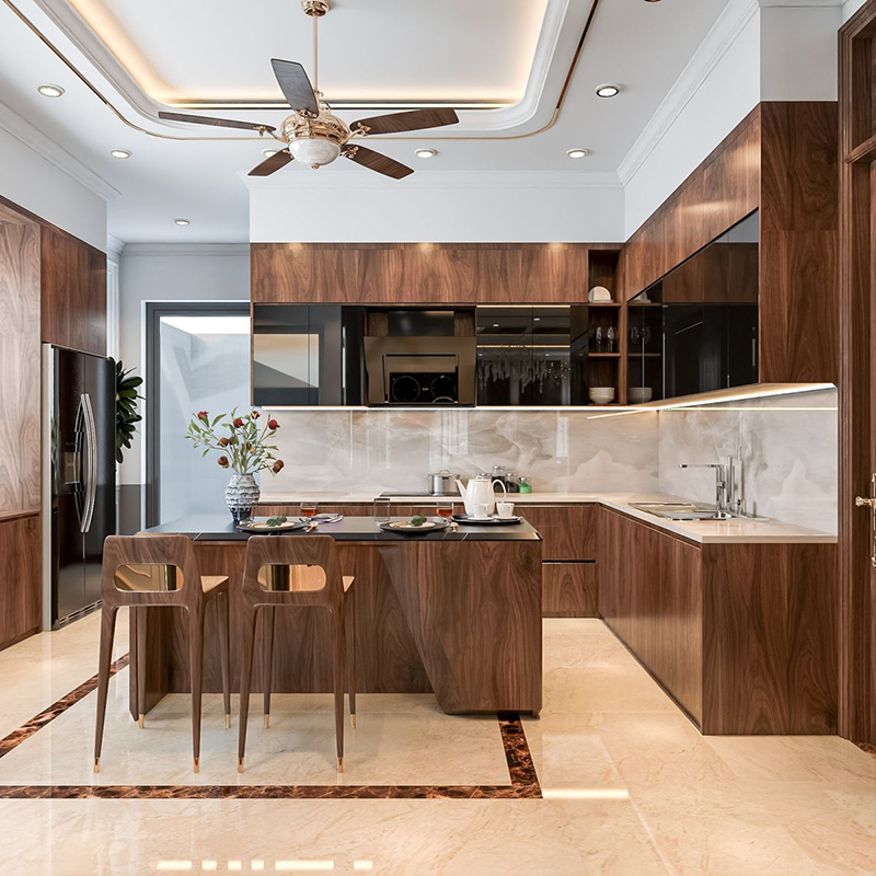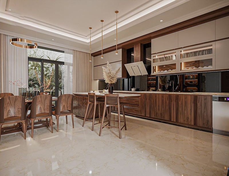 Thiết kế dành cho bếp rộng, tạo luồng thao tác nấu nướng khoa học và tiện nghi.
